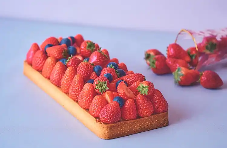 みずみずしい京都産イチゴをたっぷりと飾った華やかなタルト。サクサクのタルト生地に濃厚なバニラカスタードクリームを重ねました。 |