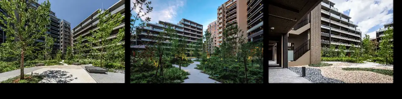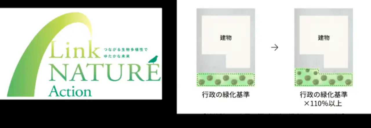 本物件には、舗装によって分断されていない、同じ景観が連続している緑地を、300平方メートル 以上確保しており、そのうち中庭に属する最大規模の緑地における構成樹木の半分以上が在来種となります。 |