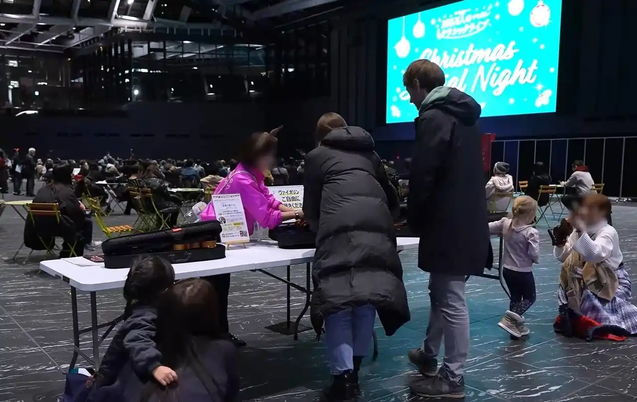 ご来場のお客様が自由に触ることができる「体験ヴァイオリン」をご用意しております。大人用と子ども用の2サイズございますので、小さなお子様でも体験いただけます。 |
