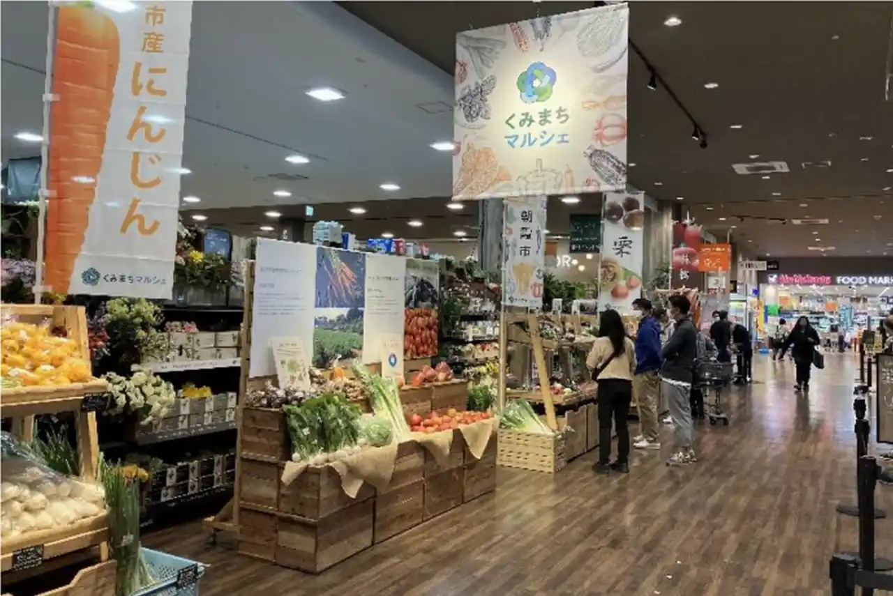 地元の農業生産者が育てた新鮮な採れたて野菜を販売するマーケットとして、地元産野菜、地元産玄米や、味に違いはないものの通常では商品になりにくい「規格外」野菜など、多彩な商品を取り揃えた「くみまちマルシェ」を常設します。 くみまちマルシェについて:https://kumimachi.com/marche/