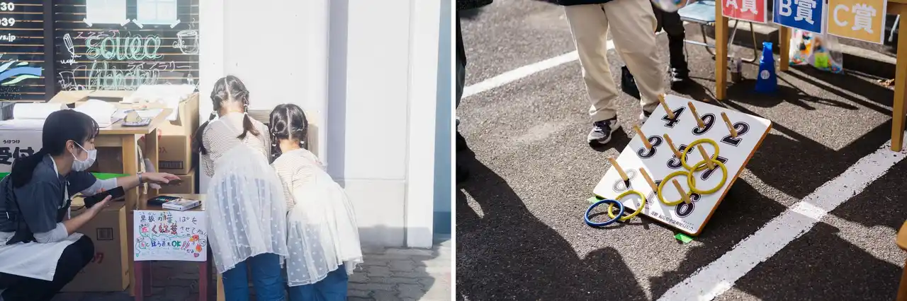 屋外では、輪投げやくじ引きなど子どもが喜ぶ企画も用意され、幅広い世代の方が一緒に楽しむことができました。 |