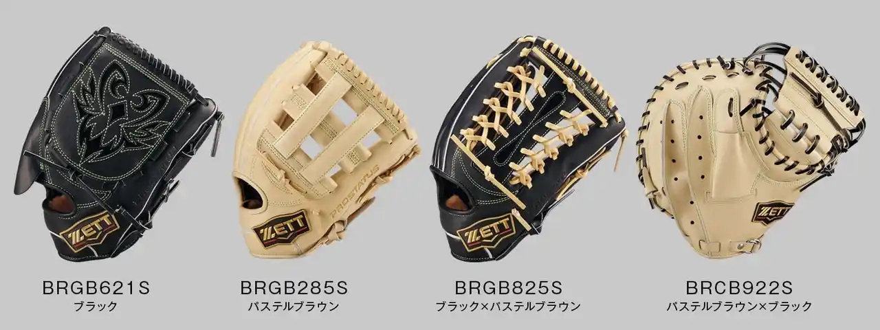 投手用/BRGB621S 二塁手・遊撃手用/BRGB564S、BRGB565S、BRGB265S、BRGB765S 三塁手用/BRGB285S 外野手用/BRGB825S 一塁手用/BRFB333S 捕手用/BRCB922S、BRCB962S |