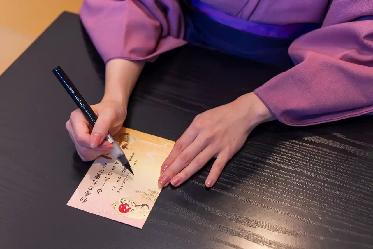 ご滞在中にチェキで撮影した写真をプリントし、筆で年賀はがきを作成できる体験プランです。完成した年賀状は、ご家族やご友人など、ご希望の宛先へ郵送することができます。 |