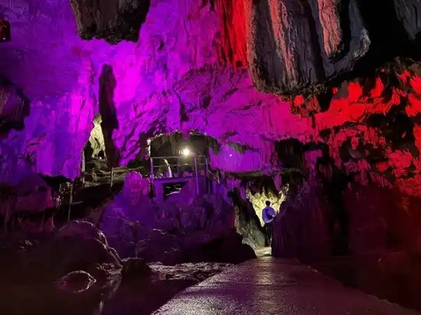 満奇洞内でVTuberのイメージカラーにあわせた特別ライトアップを実施 |