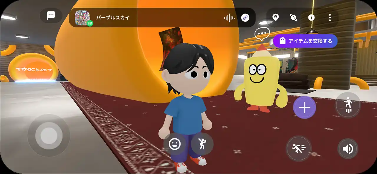 ユーザーは「エントランス」から各アーティストの専用ワールドにアクセスし、音楽やコンテンツを通じてファン同士がリアルタイムでつながれます。 |
