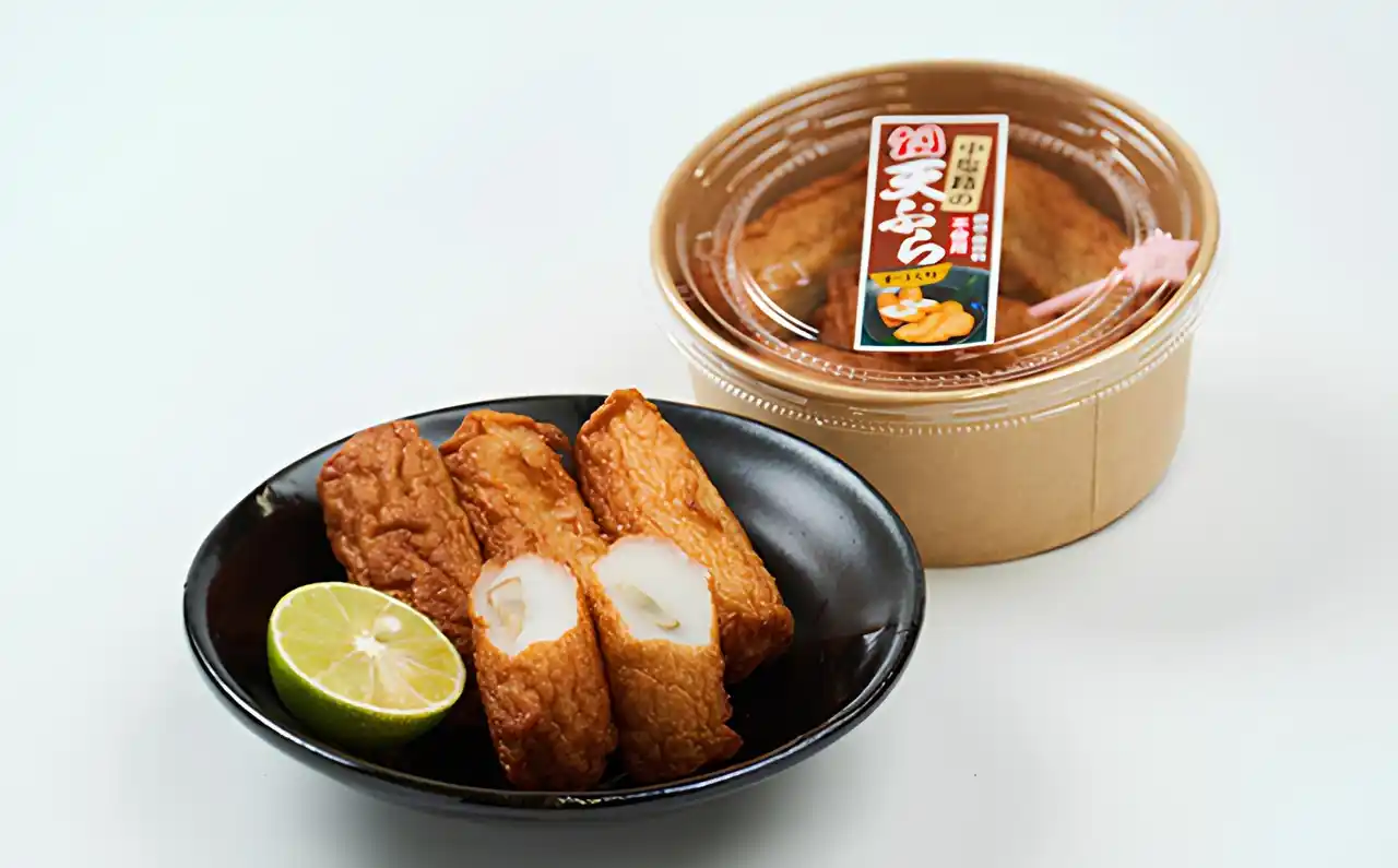 代表的な商品「小天」は、ふわふわな食感が楽しめ、「ごぼ天」は香ばしく、ポリポリとした歯ごたえがやみつきになります。どちらも職人が一つひとつ丁寧に手作業で形を整え揚げることで、おいしさを閉じ込めています。 |