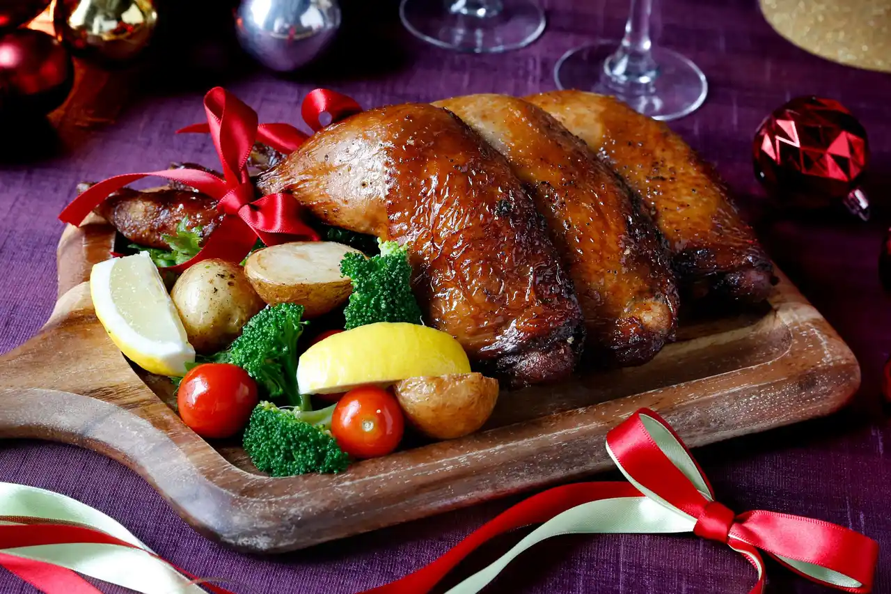 クリスマスのテーブルを華やかに彩る、重慶飯店のクリスマスチキンをぜひご賞味ください。 |