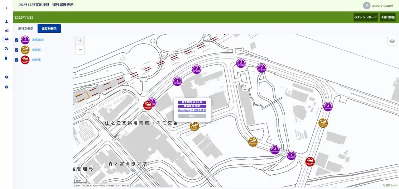 運転履歴 表示画面 |