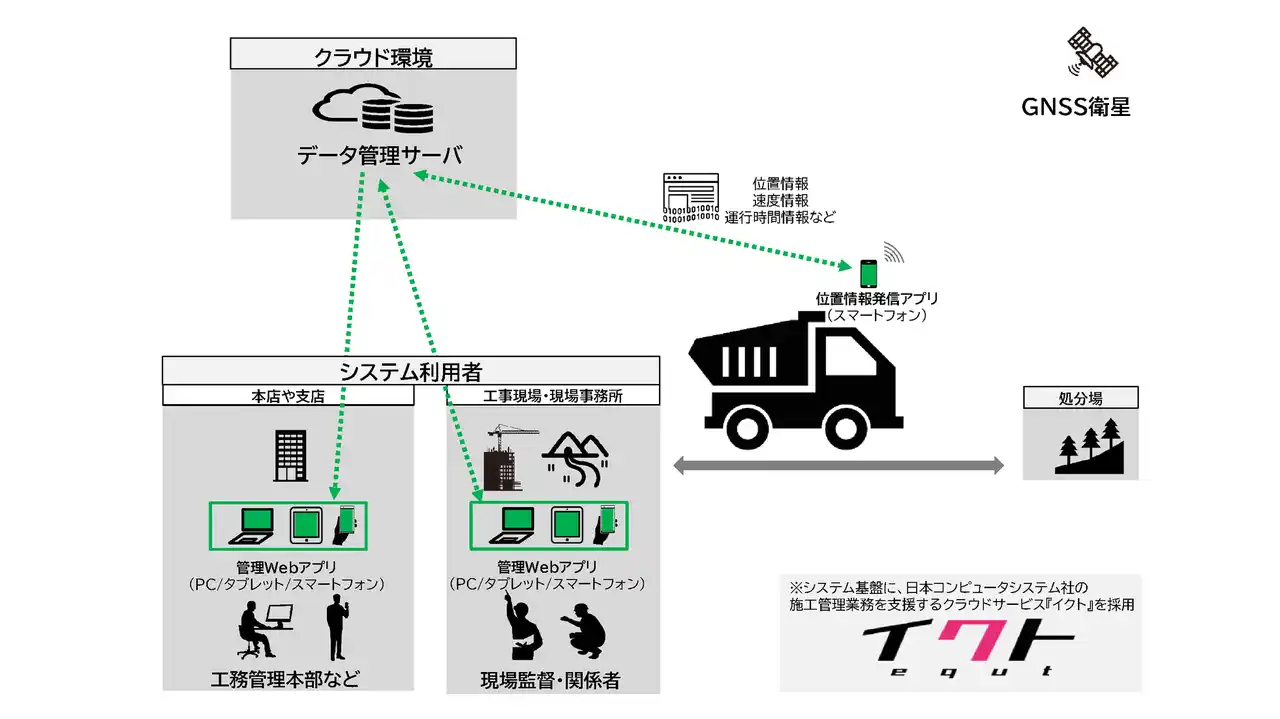 株式会社鴻池組(本社 大阪市中央区 代表取締役社長 渡津弘己)は、日本コンピュータシステム(NCS)株式会社(本社:東京都港区 代表取締役:川部弘明)と共同で、ダンプカーのデータマネジメントシステム「DUMPLUS(ダンプラス)」を開発しました。建設現場の生産性向上を目指し、【「経験と勘」から「データと戦略」の土運搬へ】をコンセプトに、運搬物の管理情報、ダンプカーの位置情報・走行情報を集約し、現場マネジメントを強力にサポートします。 |