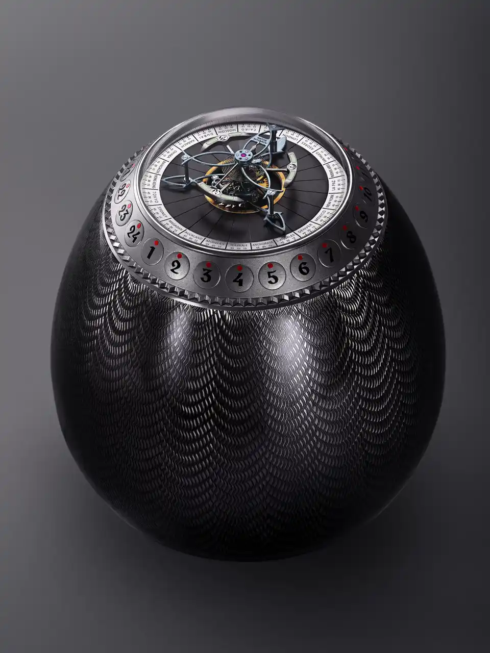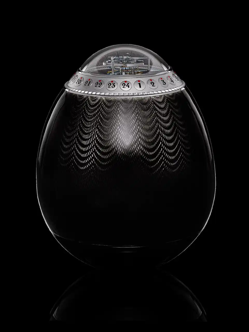《St. Petersburg Easter Egg Tourbillon Clock》は、その名の通り、ロシアを代表する宝飾工芸「イースターエッグ」から着想を得たテーブルクロックです。 伝統的な豪奢な装飾に頼るのではなく、極めてミニマルで現代的な造形によって、クラシックなテーマを21世紀の感性へと再解釈している点が特徴です。 |