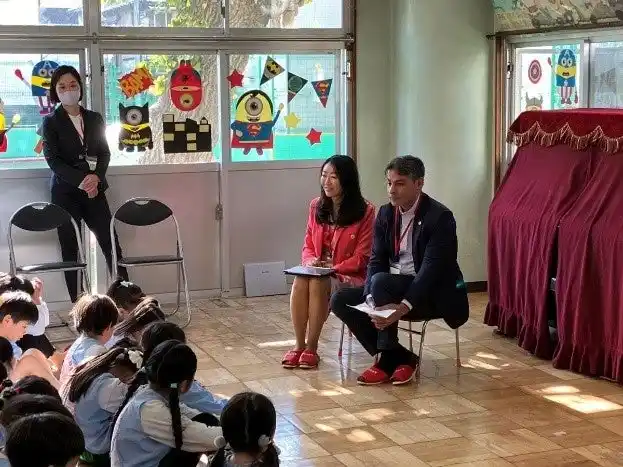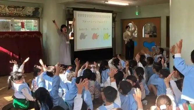カナダのブルーベリー生産最大手の一社、シルバーバレーファーム(ブリティッシュコロンビア州/レイ・ビリン 代表取締役社長)は、11月26日(水)に豊島区の東京音楽大学付属幼稚園、11月27日(木)に品川区の亀田幼稚園で幼稚園児を対象とした出張授業を行いました。本活動は、日本の子どもたちにブルーベリーの栄養価やおいしさを伝え、健康的な食生活を支援することを目的として2023年より開始されたものです。3回目を迎える今年度は、初めて幼稚園を対象に開催され、園児たちと直接触れ合いながらブルーベリーの魅力を伝えました。 |