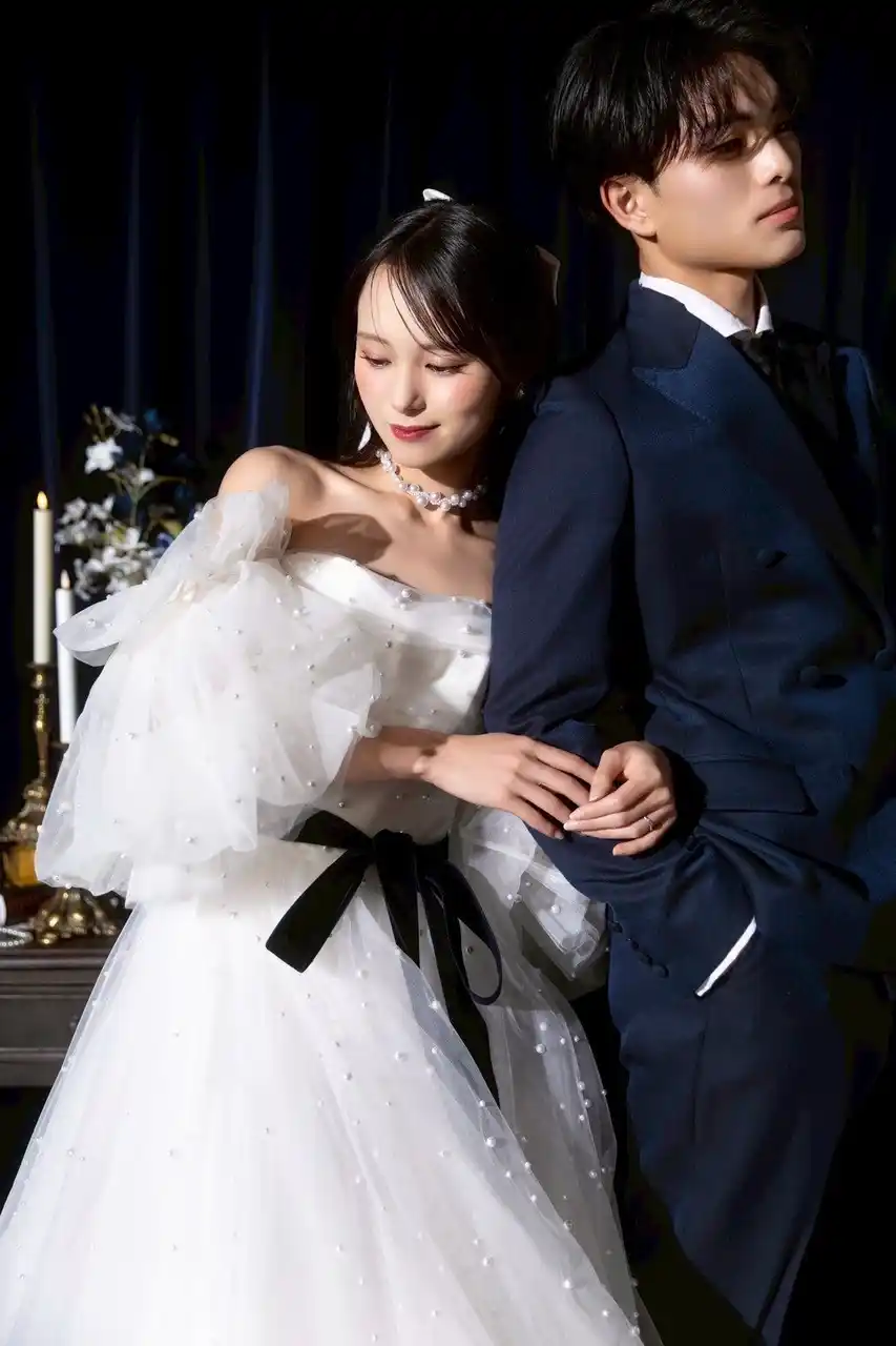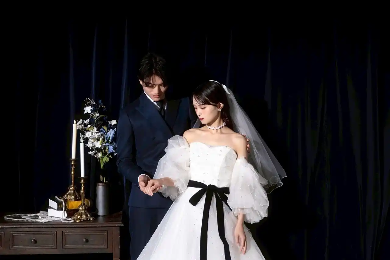 この度、カシェットスタジオを一部リニューアルOPEN。スタジオとコントラストの演出で、重厚かつドラマティックな非日常的世界観を実現。 新作ドレスとスタジオのディテールまで愛おしい統一美をご提供。