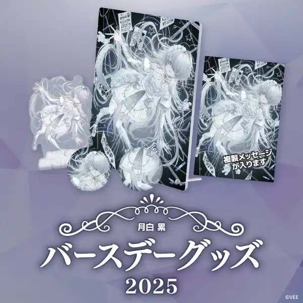 | 本日・12月10日に誕生日を迎えた月白 累のバースデーグッズの詳細を公開するとともに、公式オンラインショップ「VEE Official Shop」にて受注販売を開始しました。 | |||||||||