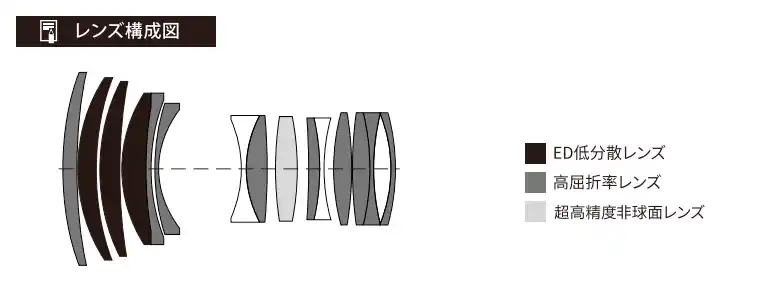 ・11群15枚(ED×3、非球面×1、高屈折率×9)の贅沢な光学設計 |