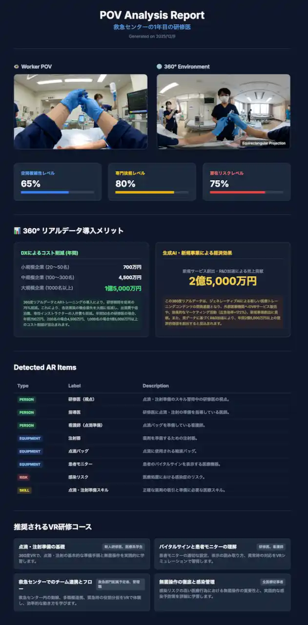 株式会社ジョリーグッド(本社:東京都中央区、代表取締役CEO:上路健介、以下「ジョリーグッド」)は、AI時代における企業の真の差別化要因である「独自の教師データ」を、360度映像撮影とAI解析により構築・活用する産業共創プロジェクト「Multimodal AI Lab(マルチモーダルAIラボ)」を2025年12月に正式開設いたしました。あわせて、テキスト入力だけで職場の360度POV(当事者目線)映像をAI生成し、解析結果と経済効果まで可視化できる体験ツール「POVワールドジェネレーター v1.0」の無料公開を開始しました。