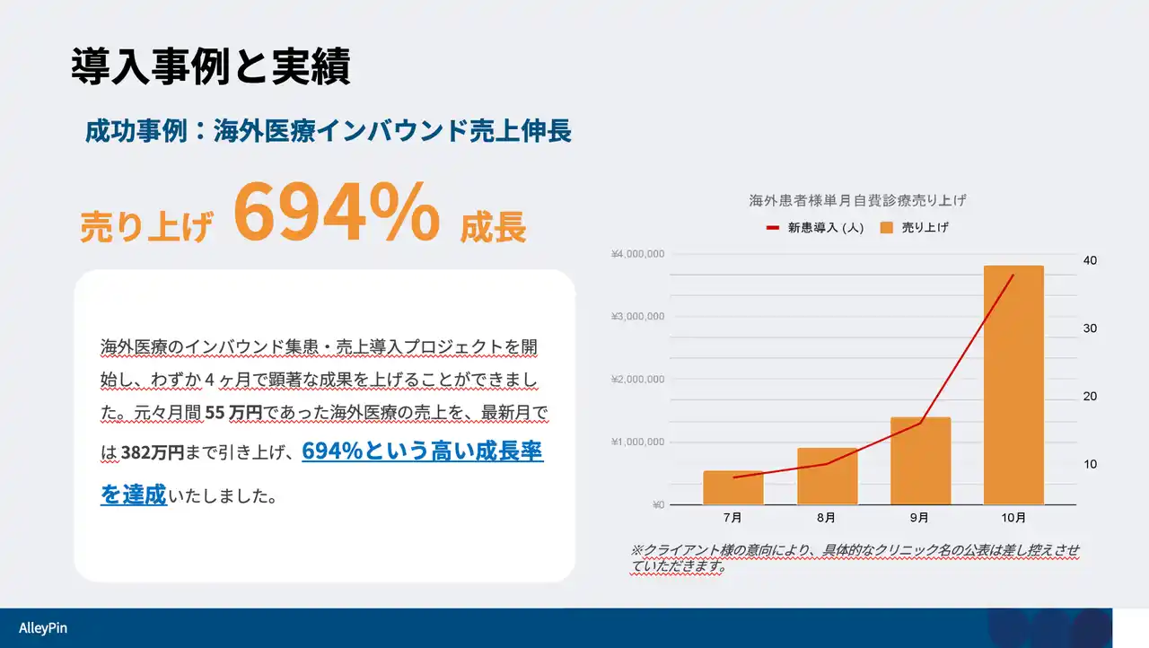 AlleyPin は今後も、日台間の医療連携を支えるデジタル基盤の整備を通じて、日本のクリニックにおける外国人患者対応の最適化を支援していく方針だ。予約、問診、フォローアップといった日常業務のデジタル化を進めることで、医療従事者の業務負担軽減と、本来の医療サービスへの集中を両立させる環境づくりを目指す。 |