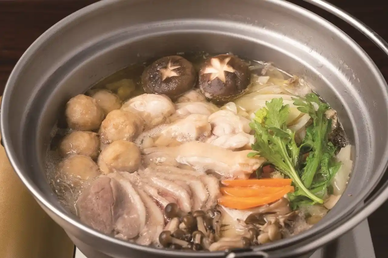 | また、紅葉ライトアップとあわせてスタートしたのが、毎年大好評の冬季限定『鶏鍋プラン』です。グランピングサイトに隣接する老舗料亭「貯水池 鳥山」とのコラボで提供される本格派。 | |||||||||||||||