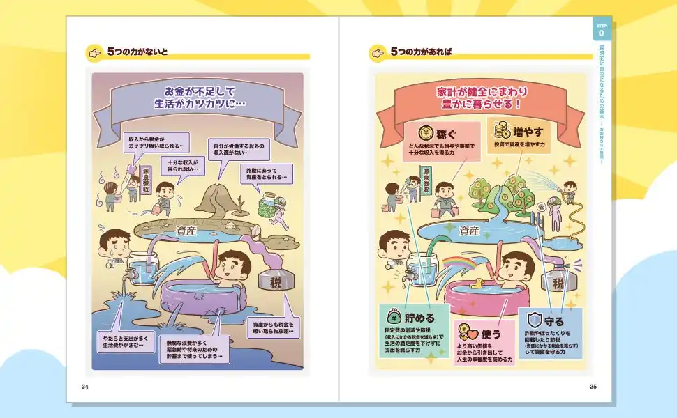 本書は、人生に不可欠なスキルとして注目される 5つの力(貯める/増やす/稼ぐ/使う/守る) を初心者にもわかりやすくビジュアル豊富に解説。 |