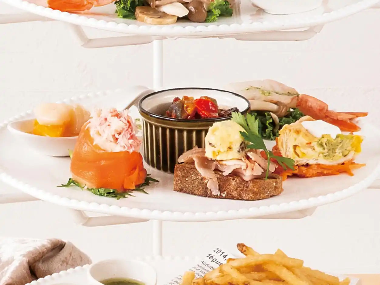 ペルティカ自慢の焼き立てフォカッチャや、生ホタテのカラフルマリネなど、会話も心も弾む彩り鮮やかな3段プレートをお楽しみください。 |