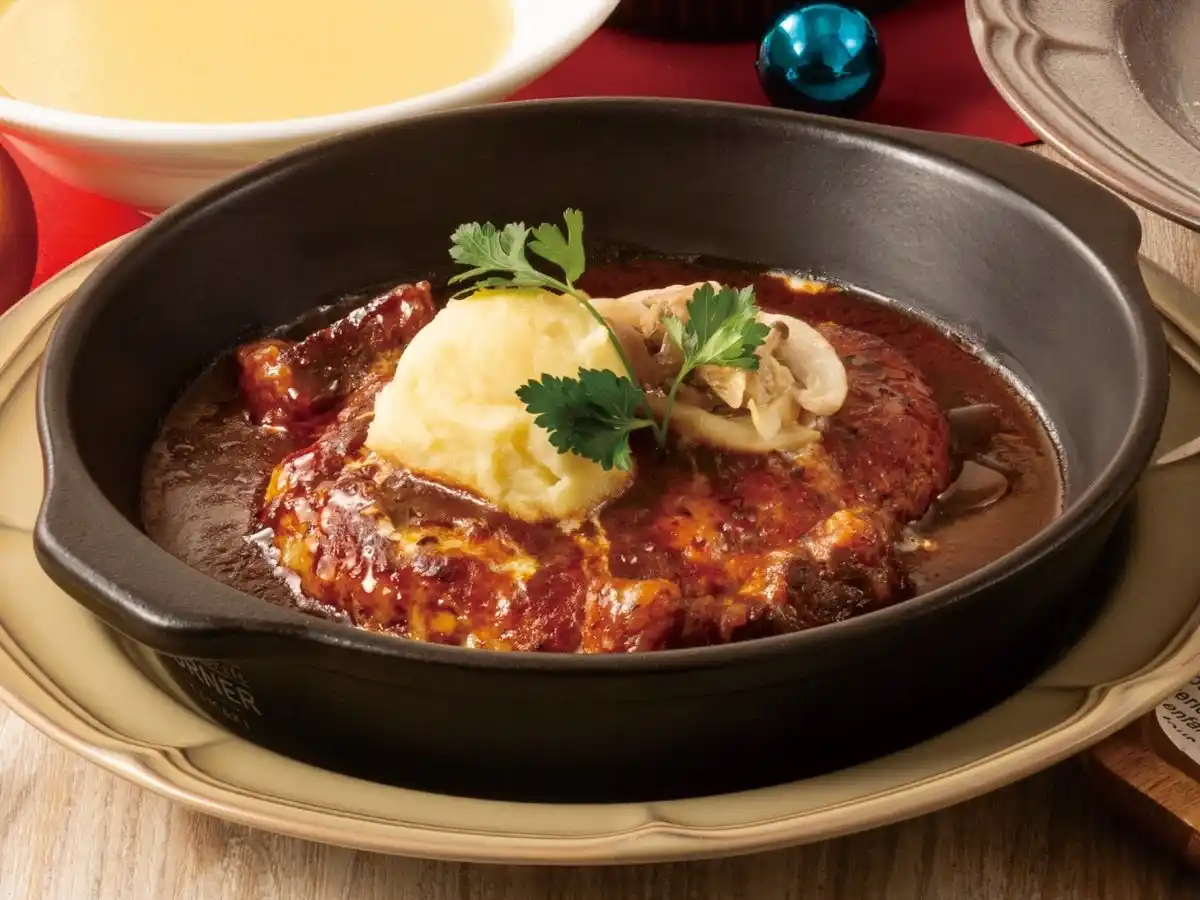 牛肉100%の旨味を閉じ込めたふっくらジューシーな粗挽きパテとじっくり煮込んだ自慢の濃厚シチューソースの贅沢ハーモニーをお楽しみください。 |