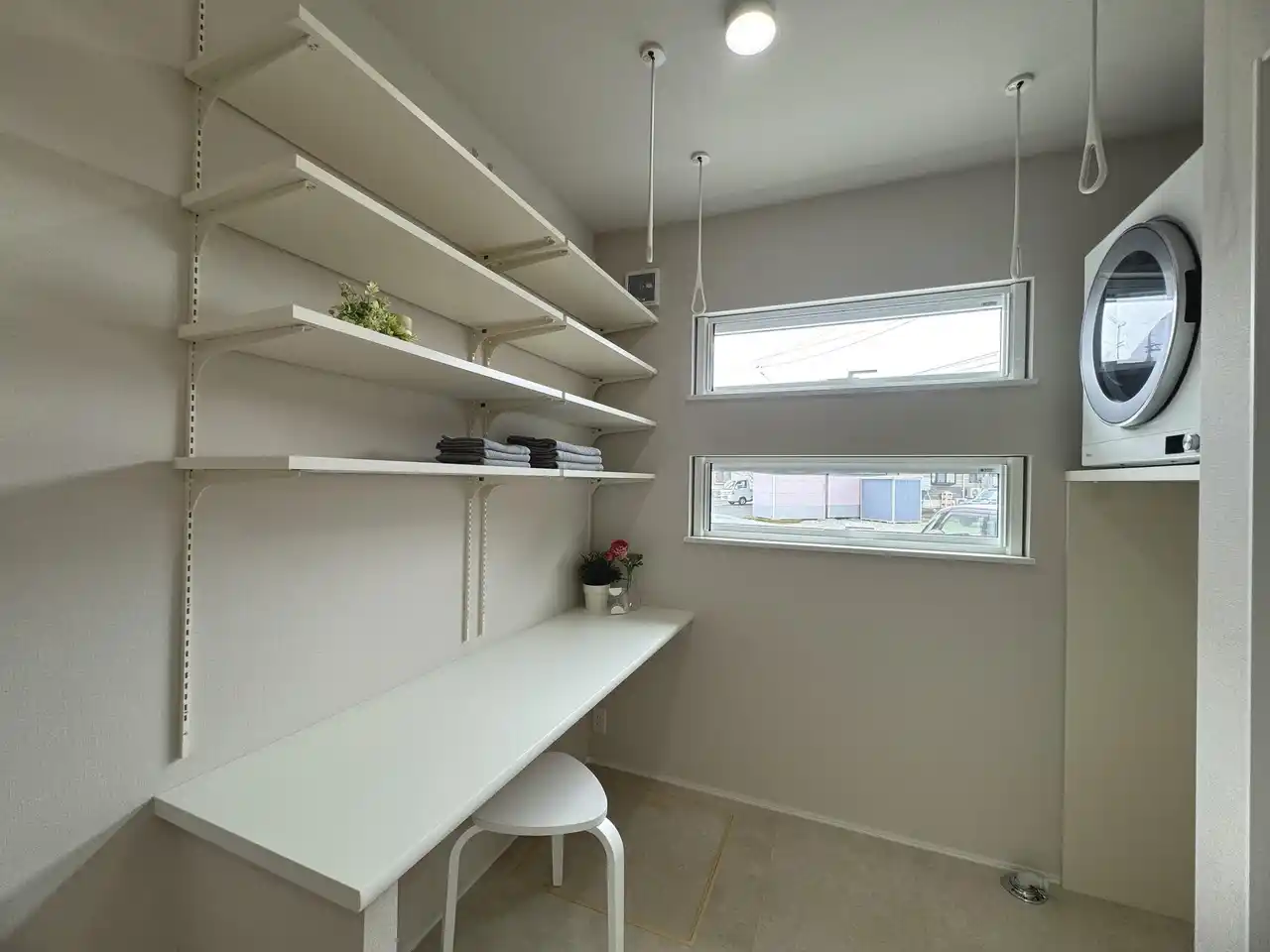 家族の時間をもっと楽しめるよう、ユニテハウスならではの“家事ラク動線”を随所に採用。 特に人気のランドリースペースは「洗う・干す・しまう」が一か所で完結し、 毎日の家事負担を大幅に軽減します。 |
