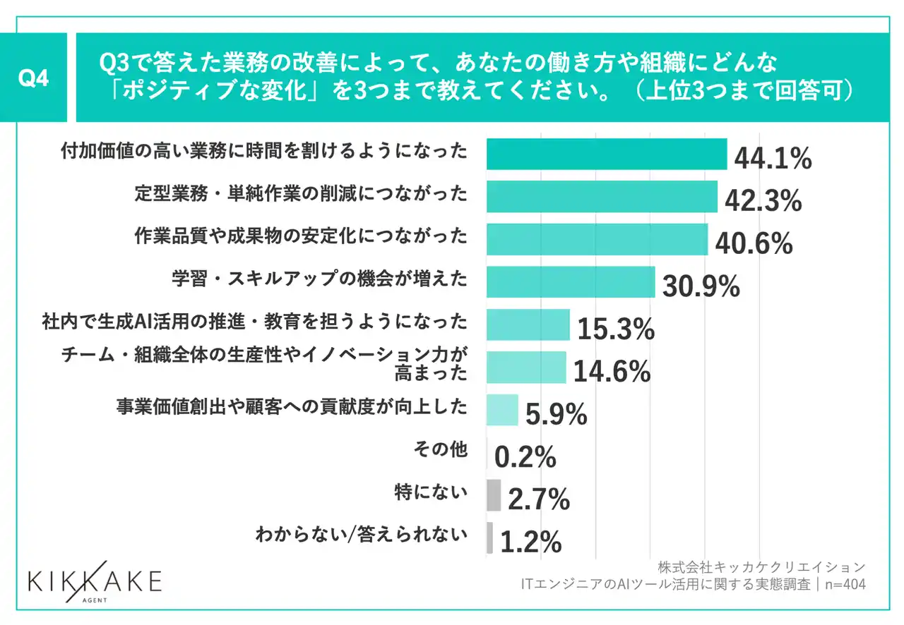 Q4.Q3で答えた業務の改善によって、あなたの働き方や組織にどんな「ポジティブな変化」を3つまで教えてください。(上位3つまで回答可) |