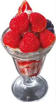 旬を迎えた甘酸っぱいフレッシュいちごに、いちごアイス、いちごプリン、いちごソースなど、多彩ないちごの味わいを贅沢に重ね合わせたパフェ。 |