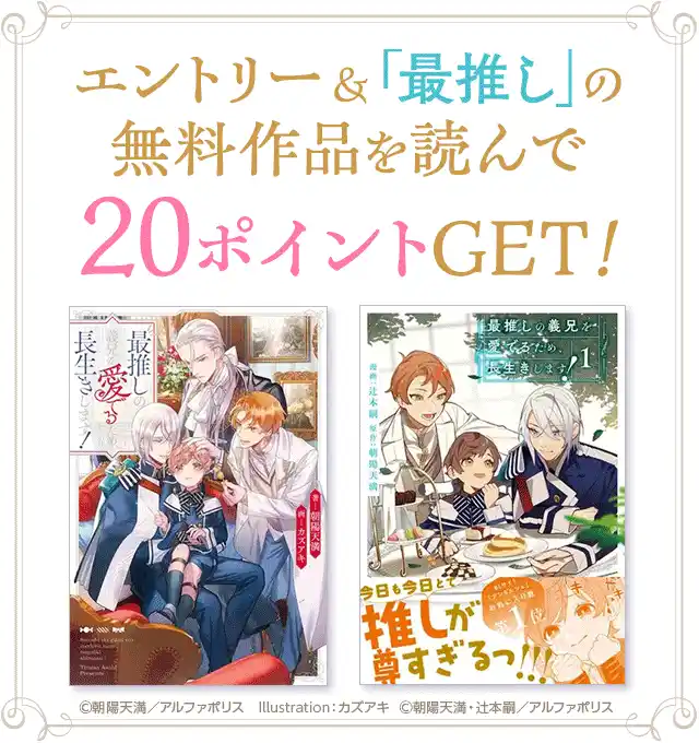 『最推しの義兄を愛でるため、長生きします!』無料商品を読んだ方全員にhontoポイントを20ポイント付与。 |