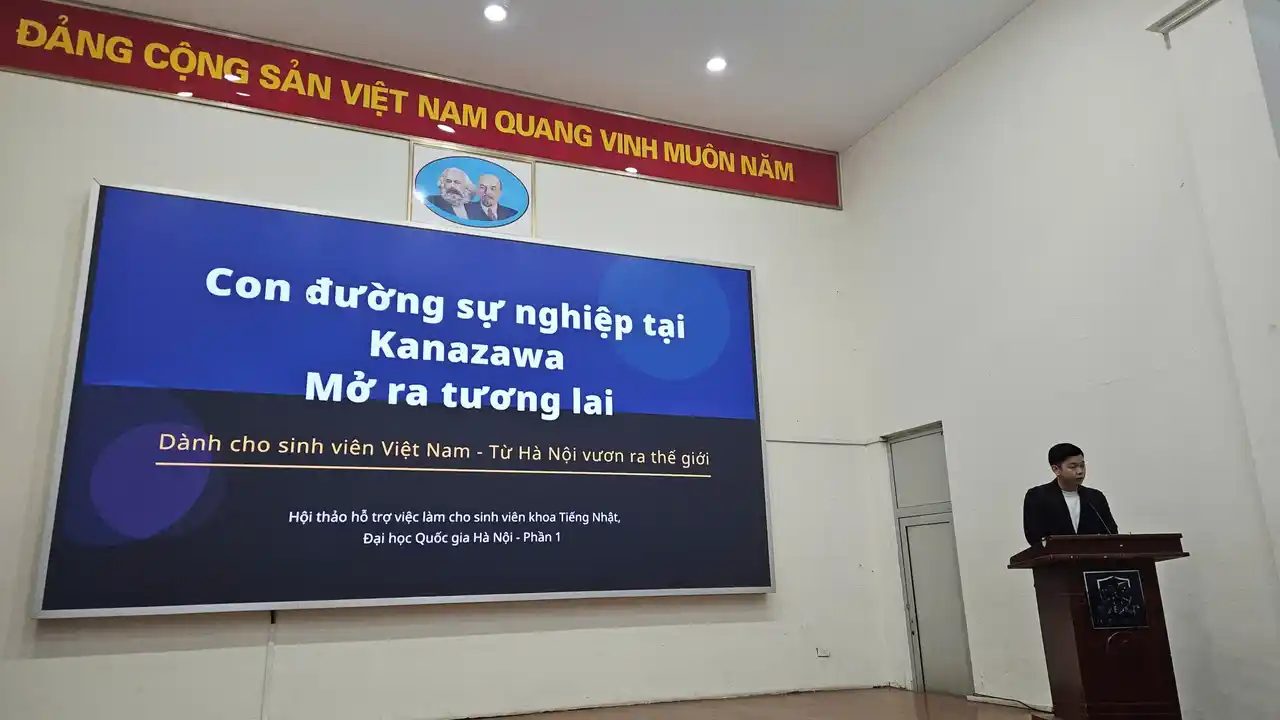 | 株式会社近代(本社:石川県金沢市、代表取締役:野村隆太)は、2025年12月6日(土)、ハノイ国家大学・外国語大学にて、日本でのキャリア形成を志望する学生を対象としたキャリアセミナーを開催しました。 | ||||||||||||||