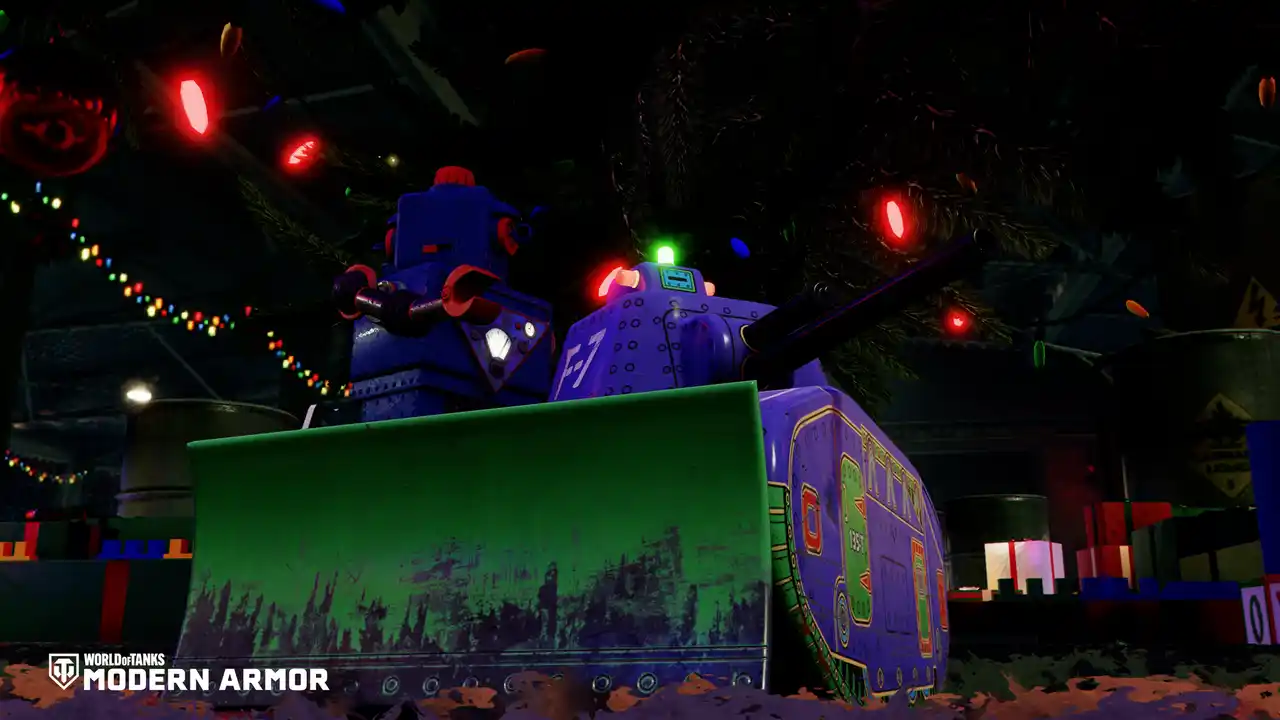 お祝いは、2025年12月9日(火)~12月22日(月)に実施される人気イベント「オモチャの戦車」モードの復活から始まります。このモードでは、2チーム各10輌によるリスポーンありのスピーディーなバトルが、ツリーの下で繰り広げられます。各「オモチャの戦車」はそれぞれ固有の兵装を備えており、ドーザーブレードを装備し体当たり攻撃に特化した新車輌「ドーザーマスター」も登場します。各チームには、新たな味方として巨大なオモチャのロボットも加わります。