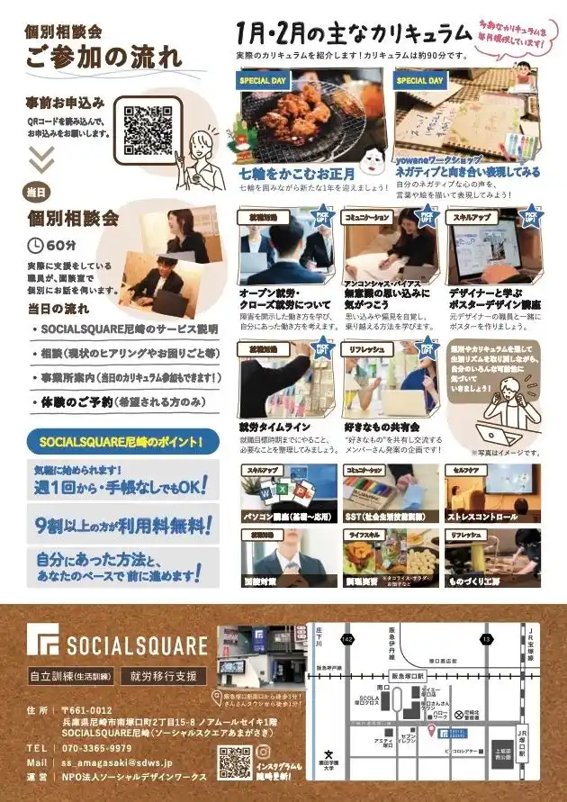 ソーシャルスクエア尼崎店(運営:NPO法人ソーシャルデザインワークス 代表理事:北山剛)では、2026年1月より、個別相談会を開催いたします! |
