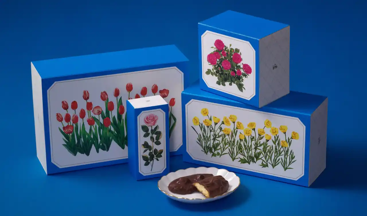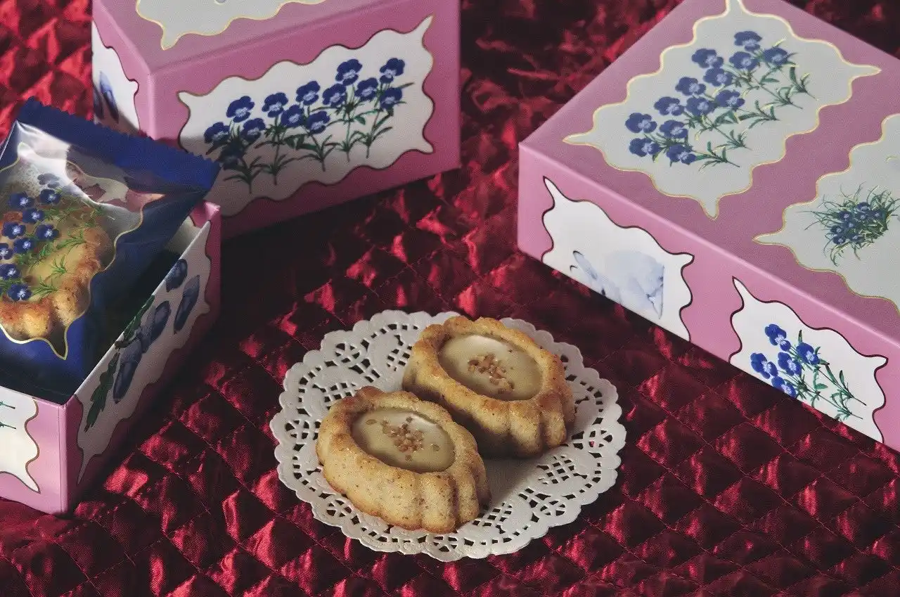 香ばしいアーモンドのパウダーを入れてくちどけよく焼き上げた生地に、コク深いキャラメルチョコレートを合わせました。 美味しさ際立つ素材感と優しい甘さにほっと心癒される味わいです。真っ白なうさぎと鮮やかなブルーのパンジーが描かれたピンクのパッケージは思わず目を引く可愛さです。 |