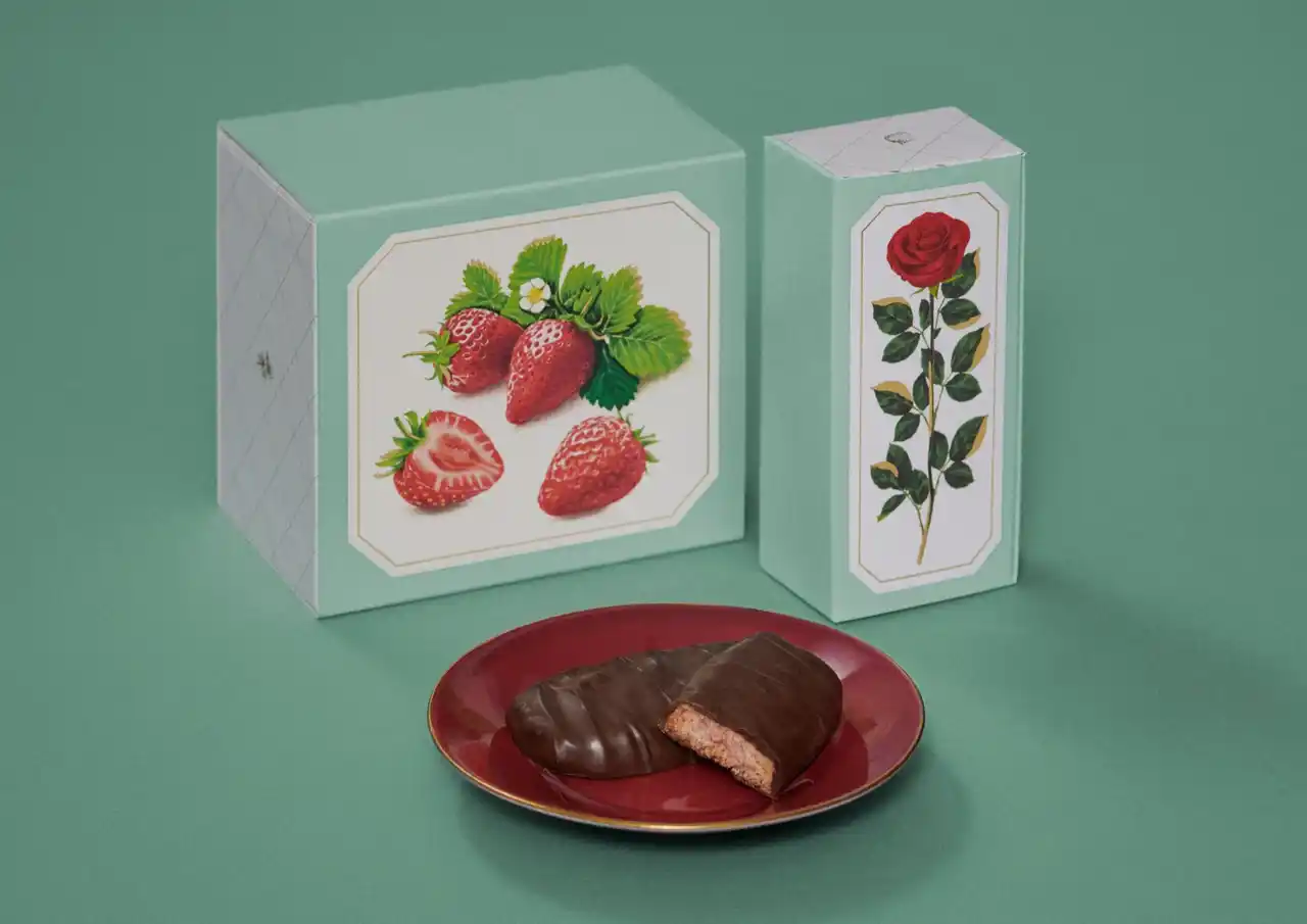 あまおう苺の香りが広がるクッキーと、すっきりとした味わいのスイートチョコレートが織りなす今だけの味わいをお楽しみいただけます。 |