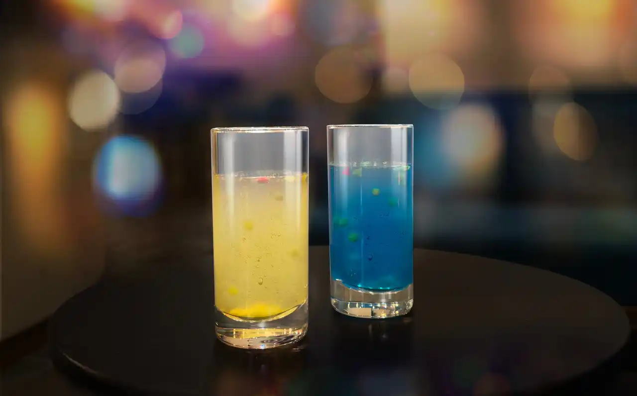 Sunrise Orange(サンライズオレンジ):朝の陽光のような明るさを表現したオレンジ色の一杯。炭酸の中をゆっくり巡るラムネ玉のきらめきが、波間に踊る朝日を思わせ、スナックの出会いにそっと灯る“はじまりの光”。 Moonlight Blue(ムーンライトブルー): 深い夜の静けさを感じさせるブルーの一杯。浮かぶラムネ玉が夜の波に揺れる月明かりのように輝き、静かに語らいを照らす“夜のおわりのあかり”。いずれもスナックのカウンターでママが提供。味わいだけでなく、グラスの中で動くラムネの演出も楽しめる、目にも心にもやさしい特製ドリンクです。 |