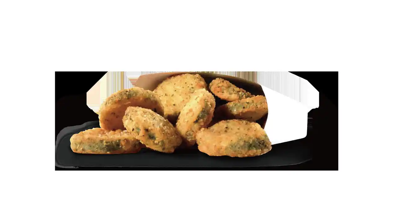 生のズッキーニをカットし、粉づけし、油で揚げ、店内調理した、ズッキーニフライです。外はサクサク、中はジューシーな味わい。手作りにこだわった、ハンバーガーに合う、カールスジュニア(R)らしい一皿です。サワークリームオニオンソースにディップしてお召し上がり下さい。 |