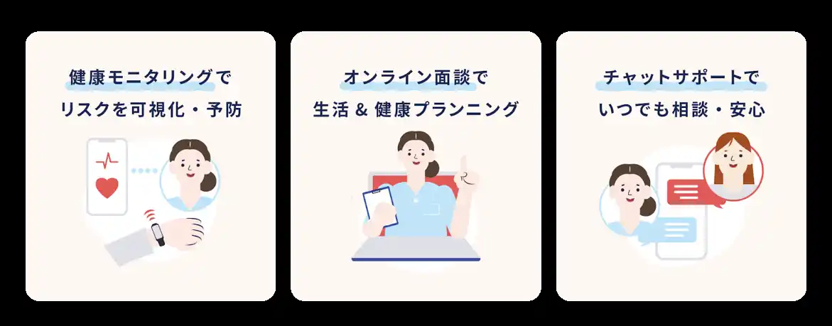MamaWellでは、ウェアラブルデバイスを用いて心拍数や活動量などのバイタルデータを収集し、妊婦の健康状態をモニタリングします。収集されたデータをもとに、パーソナル助産師が個別に最適化された健康管理プランを提供し、妊娠合併症のリスク低減を目指します。チャットサポートによる相談は24時間対応で、妊娠中に直面する体調の変化や不安に寄り添います。助産師とのオンライン面談は、妊婦だけでなくパートナーも参加することを推奨しています。出産前から妊婦とパートナーが双方の感情を共有し、役割を理解することで、産後のスムーズな共同育児への移行を目指します。 |
