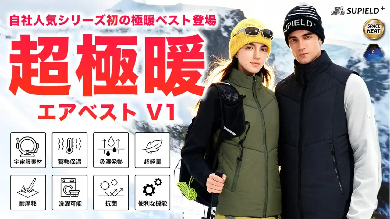 本日12月9日(火) 14:00より、INFINITYシリーズの新作 「エアベスト V1」 も公開いたしました。 高性能保温繊維とエアロゲル、先端保温技術「SPACE HEAT」による“3層構造”を採用し、軽さ・暖かさ・快適性を追求したモデルです。 |