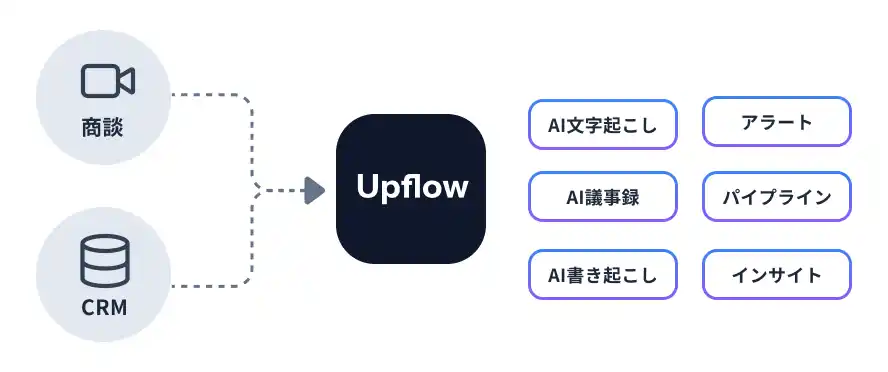 Upflowは、BtoB企業の営業組織において、数字だけでは見えない「商談の中身」から、売れるチームをつくる営業マネージャーのためのAIエージェントです。 商談録画という現場の事実をもとに、数字だけでは現れないリアルで解像度の高いレポート・インサイトを提供し、リスクやチャンスを早い段階で捉え、数字を「作りに行く」マネジメントを支援します。 チームの勝ちパターンや方針を学習したAIエージェントが、マネージャーと営業メンバーそれぞれをサポートし、戦略の実行までを一気通貫で後押しします。 |