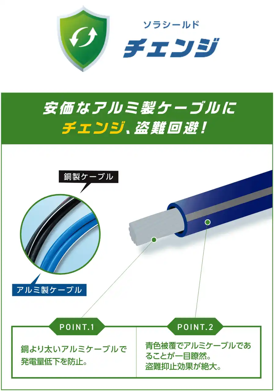 「ソラシールド」は、低圧太陽光発電所向けのケーブル盗難対策ソリューションです。 |