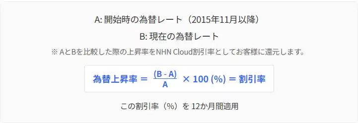 本施策は、“為替差分をそのまま割引率として12か月還元する”国内初のプログラム(当社調べ)で、外資クラウド利用企業の為替負担を実質的に回収する仕組みです。 |