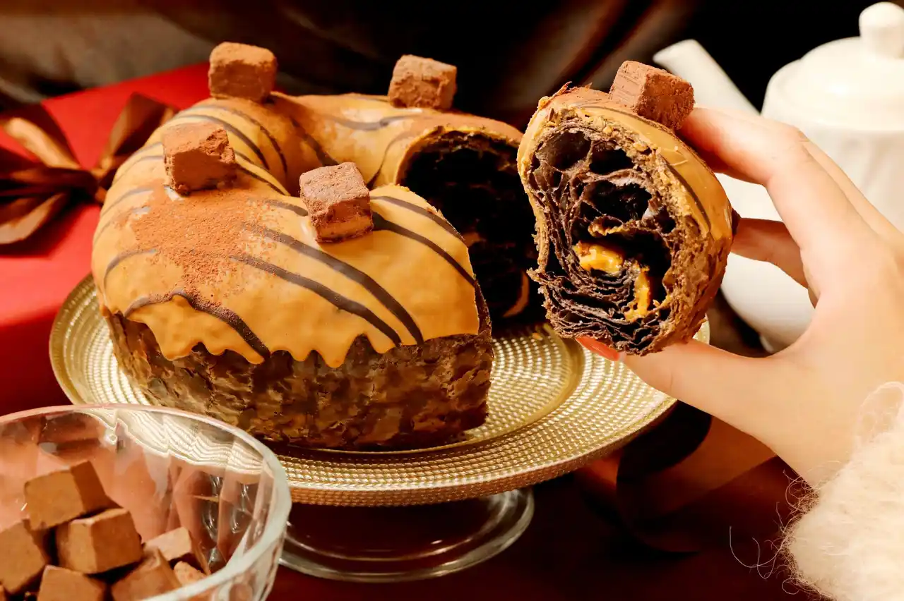 ビターなブラックココアを練り込んだデニッシュ生地で、とろっとなめらかなキャラメルク |