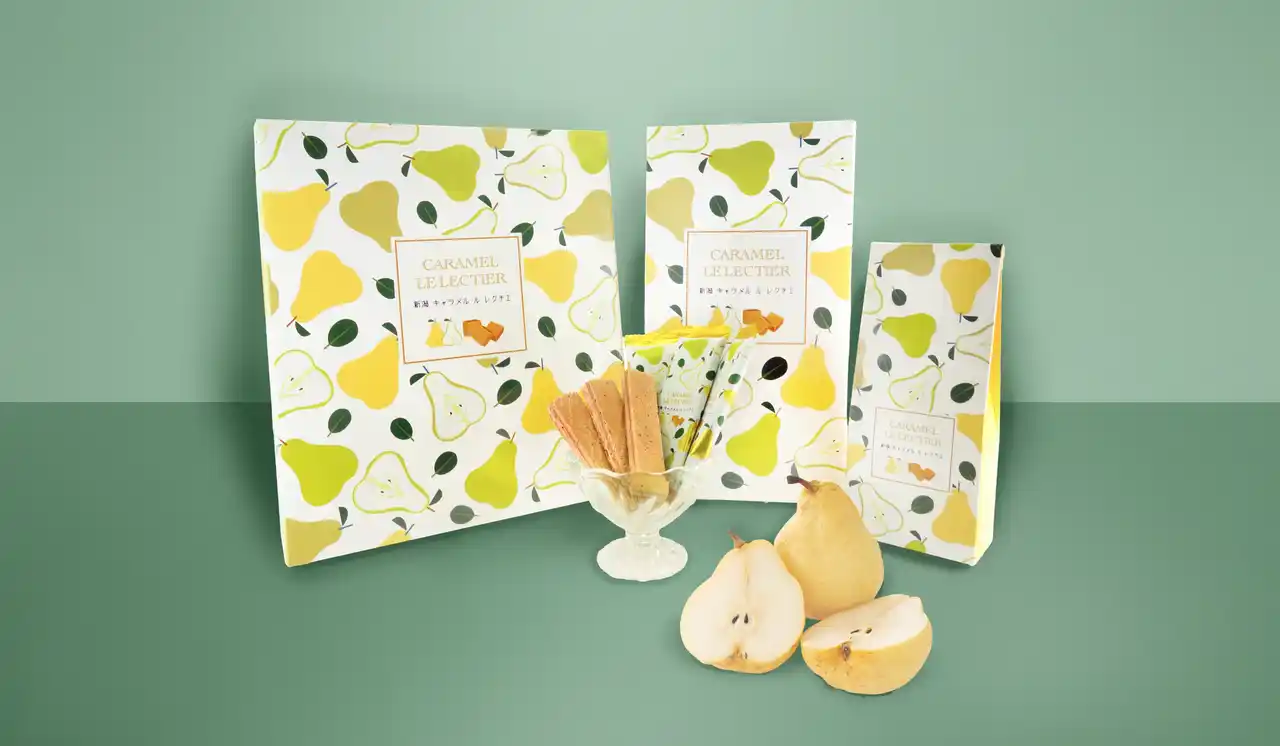 新潟キャラメル ル レクチエは新潟県のブランド品目ル レクチエの上品な甘みを活かし、弊社では「作る人・売る人・贈る人」全員が自信を持っておすすめできる洋菓子を企画・商品化されました。洋菓子店出身の社員の発案で、キャラメルと洋梨の定番の組み合わせ“ キャラメル・ポワール” を新潟の素材で表現。コク深いキャラメルとみずみずしい洋梨が調和した、香り豊かで上品な味わいをお楽しみいただけます。手土産やギフトにも適しており、贈り物としての使いやすさも魅力のひとつです。近年は、新潟県への観光客の増加やインバウンド需要の回復に伴い、地域色豊かな土産品としての注目も高まっています。 |