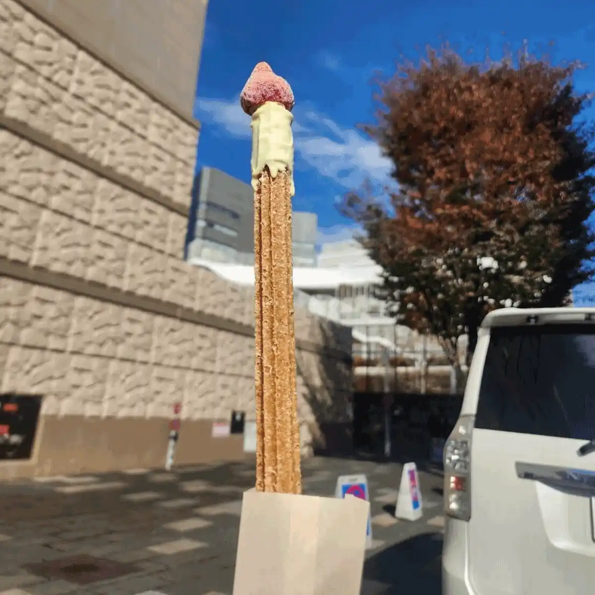 赤い苺とホワイトチョコのイマリ・キャンドル・クリスマス限定チュロスです。 |
