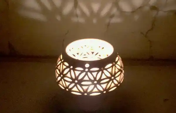 火の揺らめきとうつわの陰を楽しめる新作のアロマキャンドルスタンドを展示中。 |