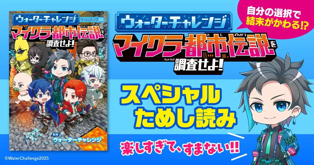 株式会社KADOKAWA(本社:東京都千代田区、取締役 代表執行役社長 CEO:夏野 剛)は、大人気YouTuber・ウォーターチャレンジを題材としたゲームブック、『ウォーターチャレンジ ゲームブック マイクラ都市伝説を調査せよ!』を2025年12月10日(水)に発売いたしました。 |