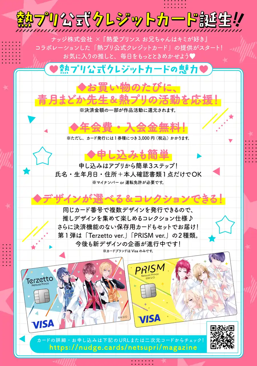 ナッジ株式会社×『熱愛プリンス お兄ちゃんはキミが好き』がコラボレーションした「熱プリ公式クレジットカードが提供スタート! |