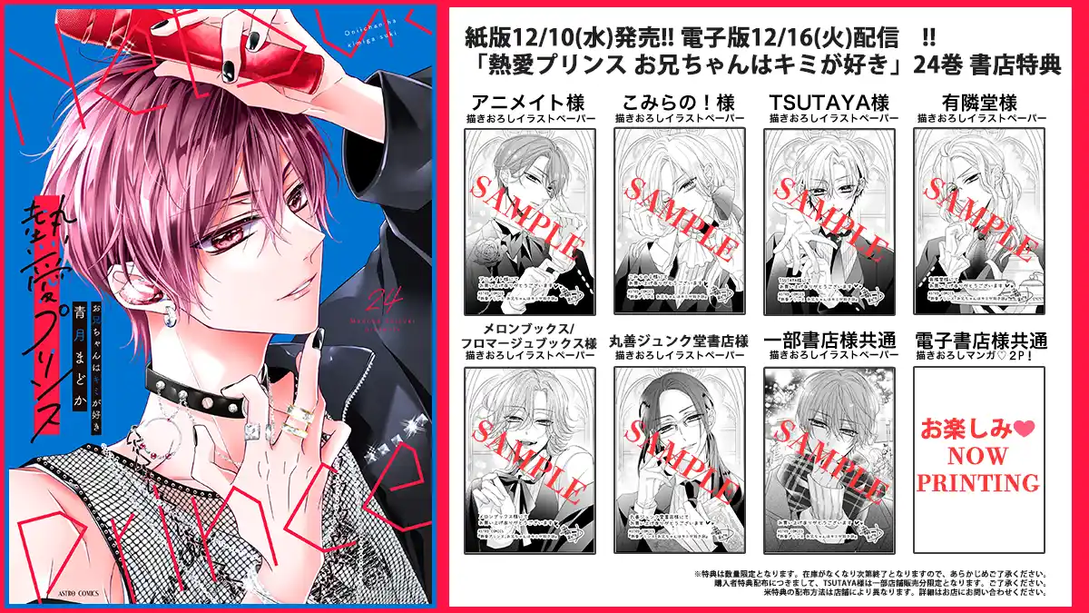 株式会社 宙出版(本社:東京都千代田区、代表取締役社長:大宮敏靖)は、累計250万部を突破した『熱愛プリンス お兄ちゃんはキミが好き』(著:青月まどか)最新24巻を、2025年12月10日(水)にASTRO COMICSより発売いたします。電子版は12月16日(火)より配信開始。 |