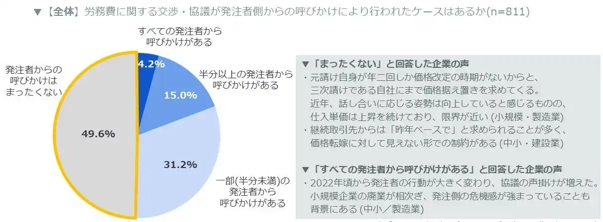 (本記事では、価格転嫁の必要があり、取引において受注者の立場にあると回答した811社の回答を分析※後述) |