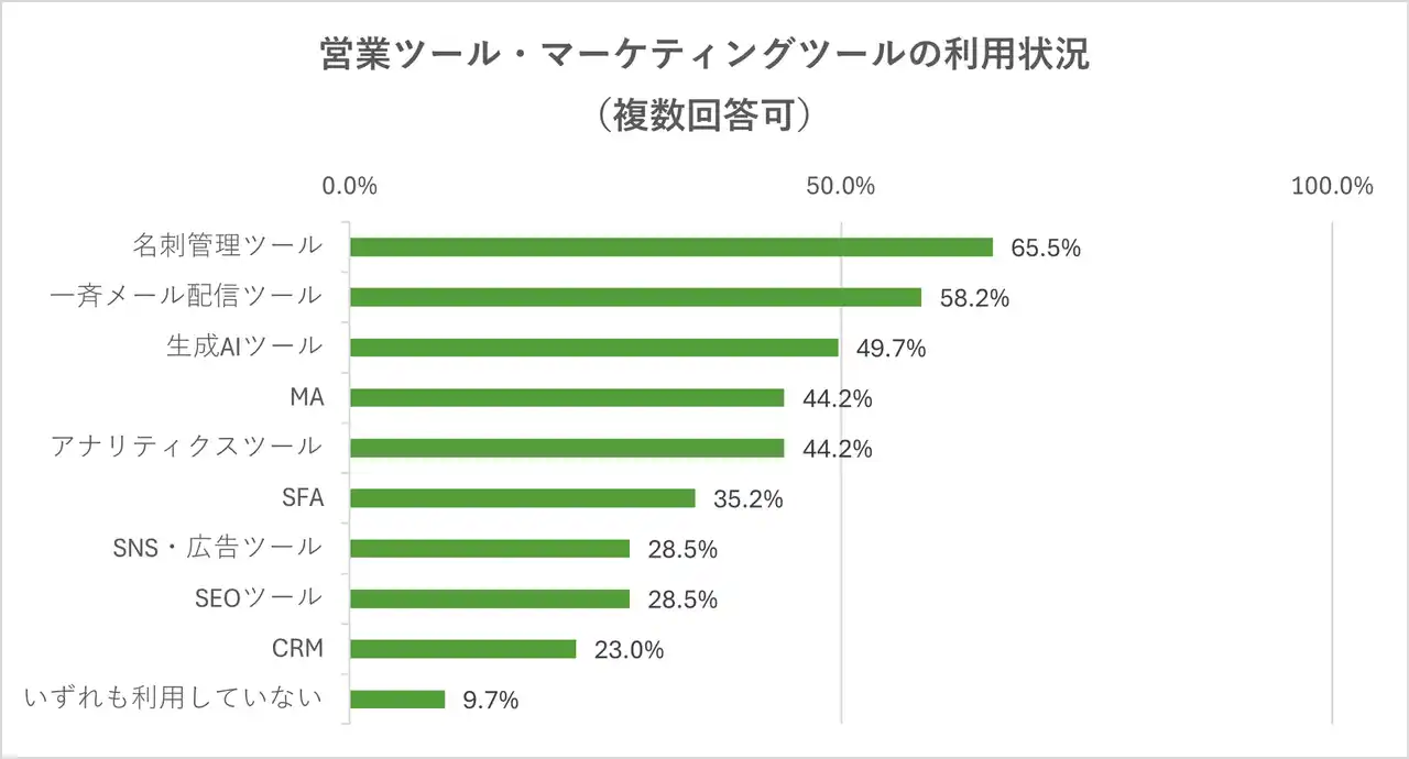 <各営業ツール・マーケティングツールの利用状況(複数回答可) 2025年10月調査> |