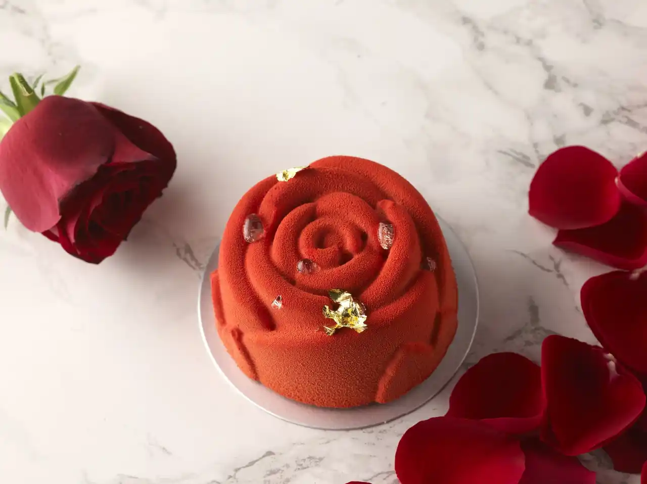 愛と美の象徴である赤いバラをかたどった「ルージュショコラ」は、女性の心をときめかせる優美な佇まい。テイクアウトはもちろん、イートインでもお楽しみいただけます。 |